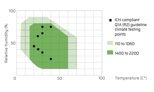 - Digitally controlled active humidification and dehumidification up to 90% rh